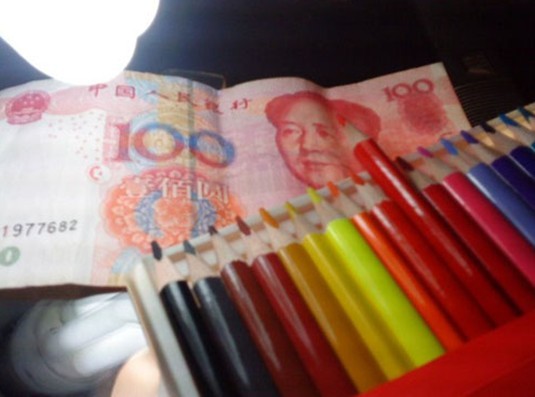 挑选出人民币所需颜色的铅笔,并肖尖铅笔。